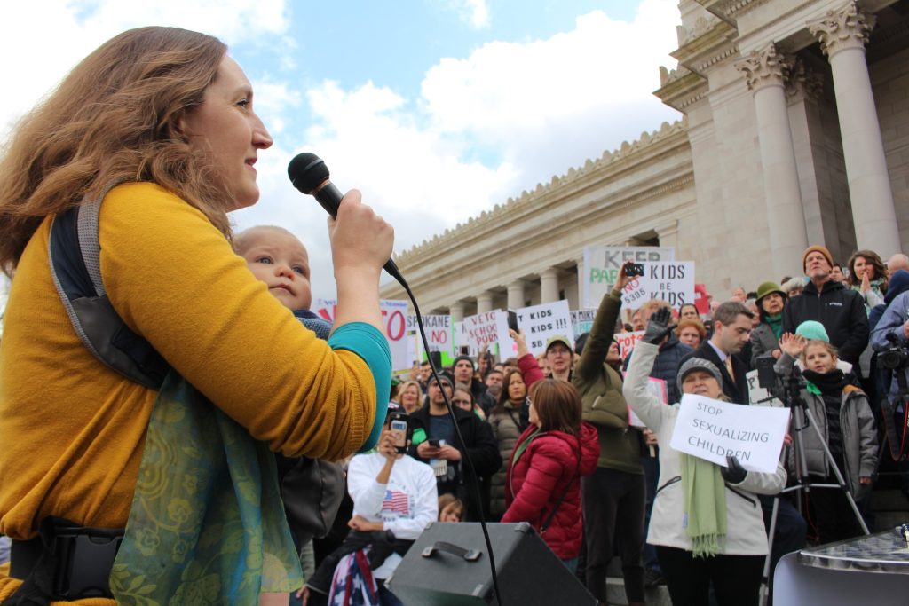 Despite the governor’s warning to avoid crowds in the wake of the coronavirus, hundreds of concerned parents and residents converged on the Capitol Wednesday to protest Saturday’s passage of a law to mandate comprehensive sex education from kindergarten through 12th grade in the state of Washington.