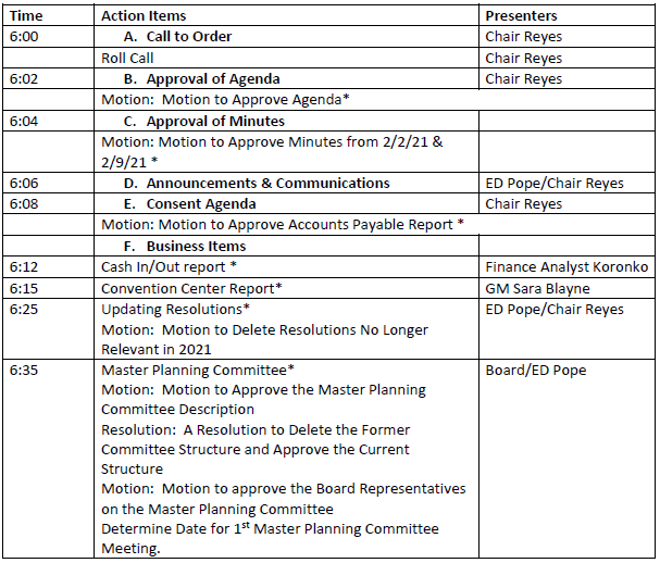 Meeting date and time: March 2, 2021 at 6:00 p.m.