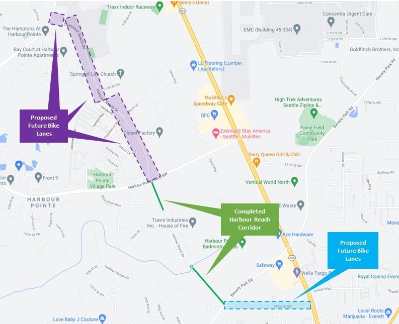 Mayor Gregerson shared that her goal is to extend the bike lanes north on Harbour Reach Dr. and Chennault Beach Rd. to the north crossing of Harbour Pointe Blvd.