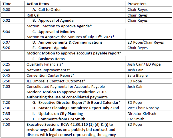 Meeting date and time: September 7, 2021 at 6:00 p.m.