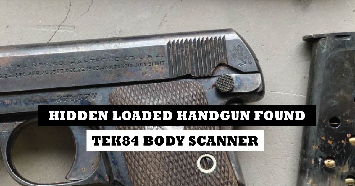 During the booking process the woman arrestee was placed into a Tek84 Body Scanner, which is used to identify and reduce the instances of contraband entering the facility. The resulting body scanner image revealed the outline of a small semi-automatic handgun hidden between folds of flesh in the woman’s abdomen.