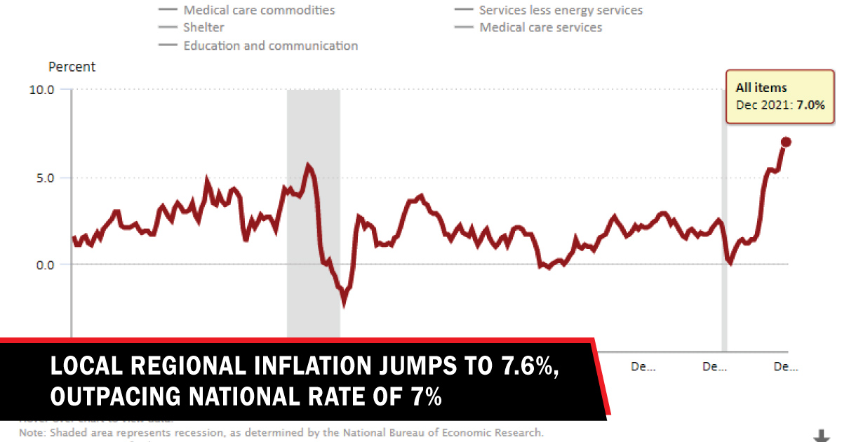 The Seattle-Tacoma-Bellevue region saw a whopping 1.1% jump in December to a 7.6% 12-month inflation rate.
