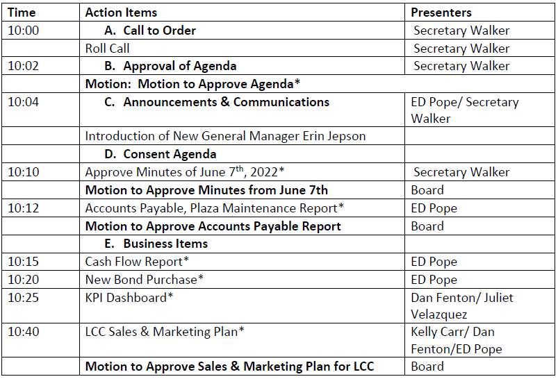 Meeting date and time: 10 a.m. – 12:15 p.m., Tuesday, July 12, 2022