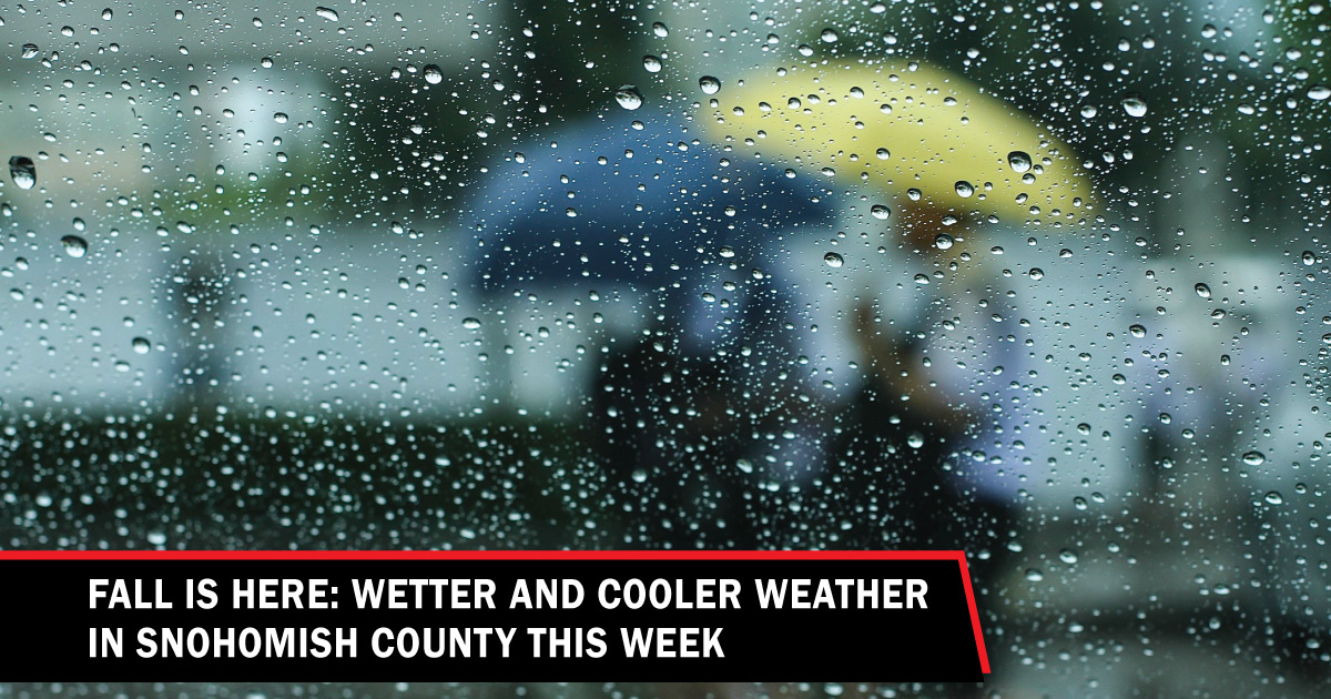 SNOHOMISH COUNTY, October 23, 2022—The National Weather Service forecasts rain throughout Snohomish County with no little to no chance of sun this week. Winds will predominately be from the southeast this week ranging from 5-13 mph. Daily temperatures will be much cooler fluctuating between a low of 42°F Tuesday evening to a high of 53°F in the afternoons — a twenty-degree drop in three weeks!