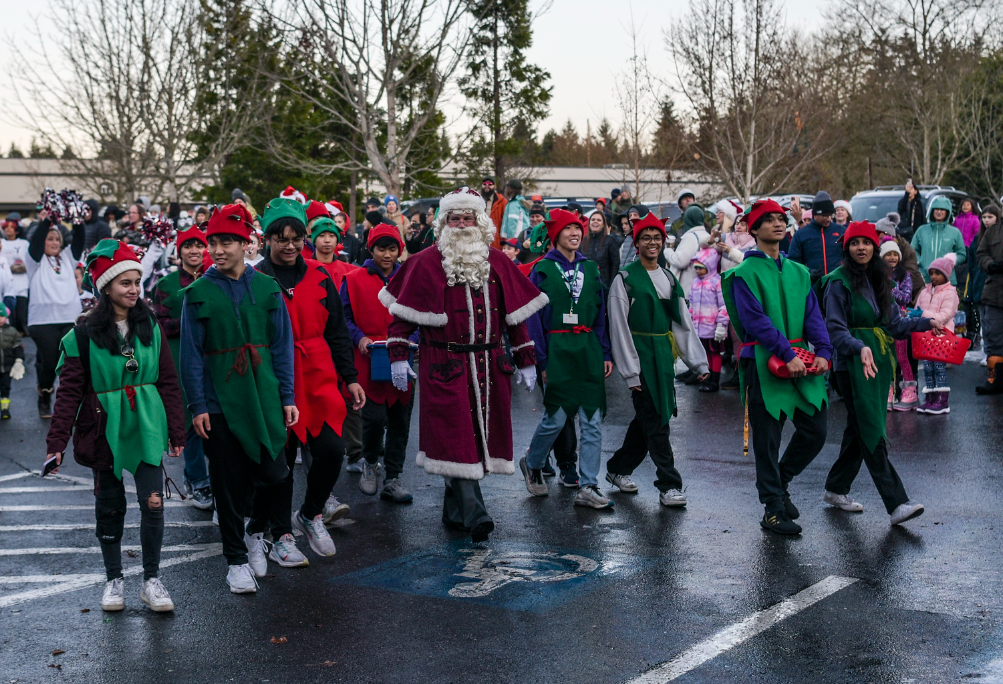 The Mill Creek Youth Advisory Board, an assembly of volunteers from local school in the area, acted as Santa’s elves for the evening, costumes and all, handing out Starbucks coffee, cocoa, and treats.