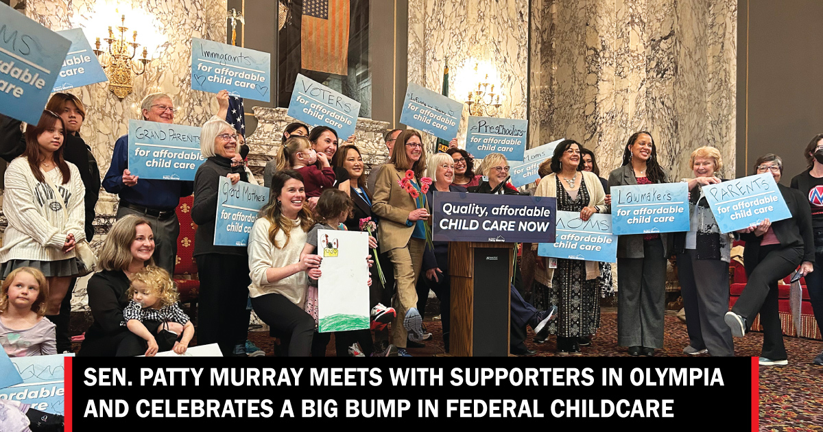 OLYMPIA, Wash., January 19, 2023—U.S. Senator Patty Murray (D-Washington) was in Olympia January 18 to promote passage of a $1.85 billion increase in federal funding for the Child Care and Development Block Grant which will help improve childcare programs across the nation.