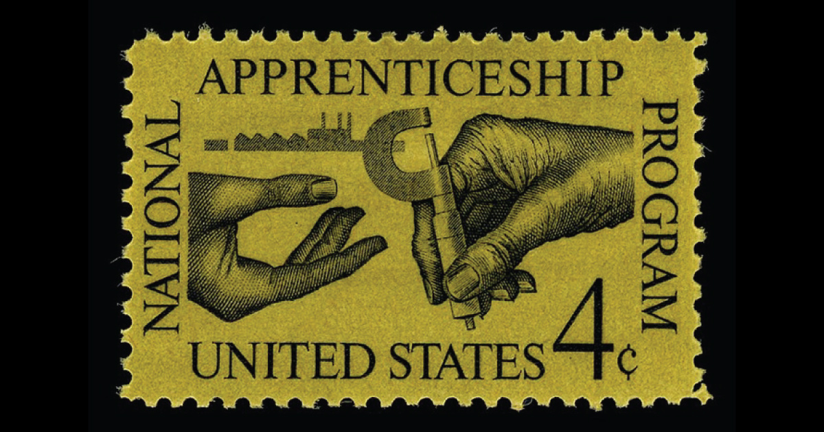 FEATURED IMAGE: This 1962 stamp featuring an image of a machinist handing a micrometer to an apprentice was issued to commemorate the 25th anniversary of the Fitzgerald Act.ย Source: Smithsonian National Postal Museum
