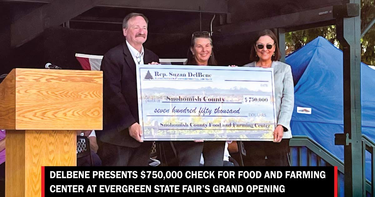 MONROE, Wash., August 24, 2023—To commemorate the grand opening of the 114th year of the Evergreen State Fair, Congresswoman Suzan DelBene (WA-01) presented Snohomish County with a $750,000 check for its Food and Farming Center — a crucial resource hub for fruit and vegetables across Snohomish, Whatcom, Skagit, and King counties.