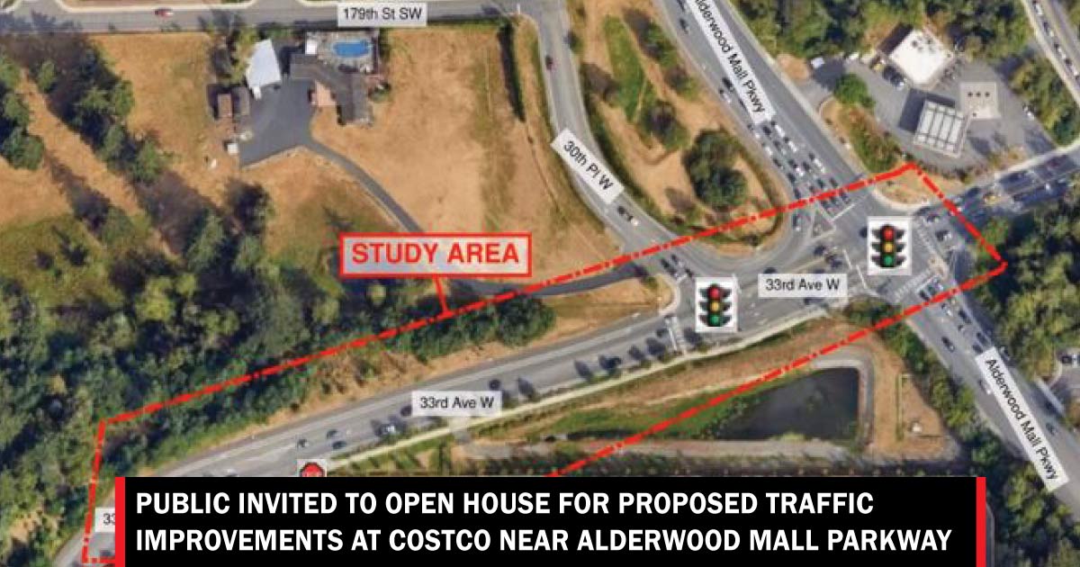 LYNNWOOD, Wash., September 15, 2023—Lynnwood Public Works will be holding an Open House on September 26 from 6-8 p.m. at the Lynnwood Council Chamber for public feedback on improving the traffic flow at Costco near Alderwood Mall Parkway and 33rd Avenue West.