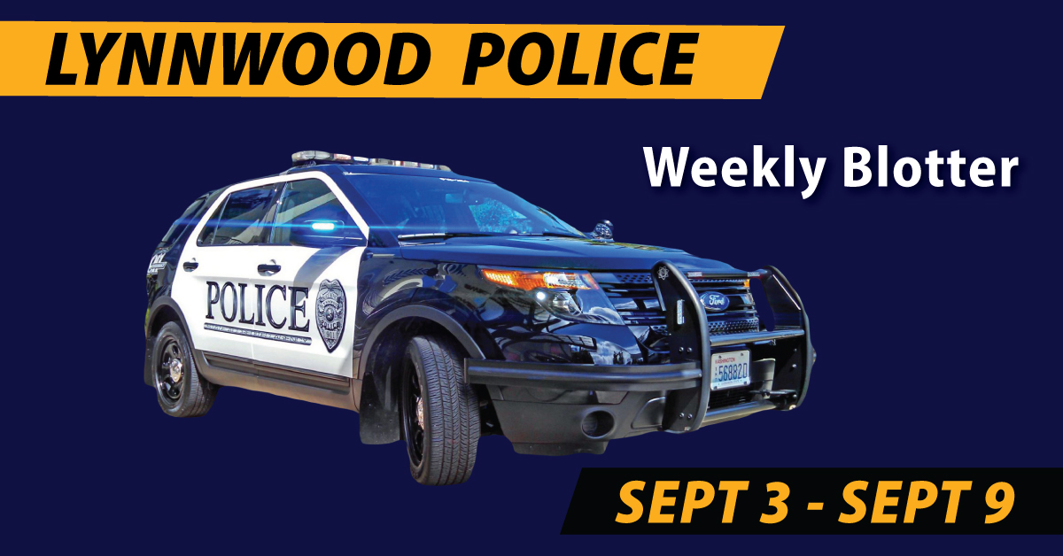 LYNNWOOD, Wash., September 16, 2023—Below is the Lynnwood Police Weekly Media Board Spreadsheet for September 3, 2023, to September 9, 2023.