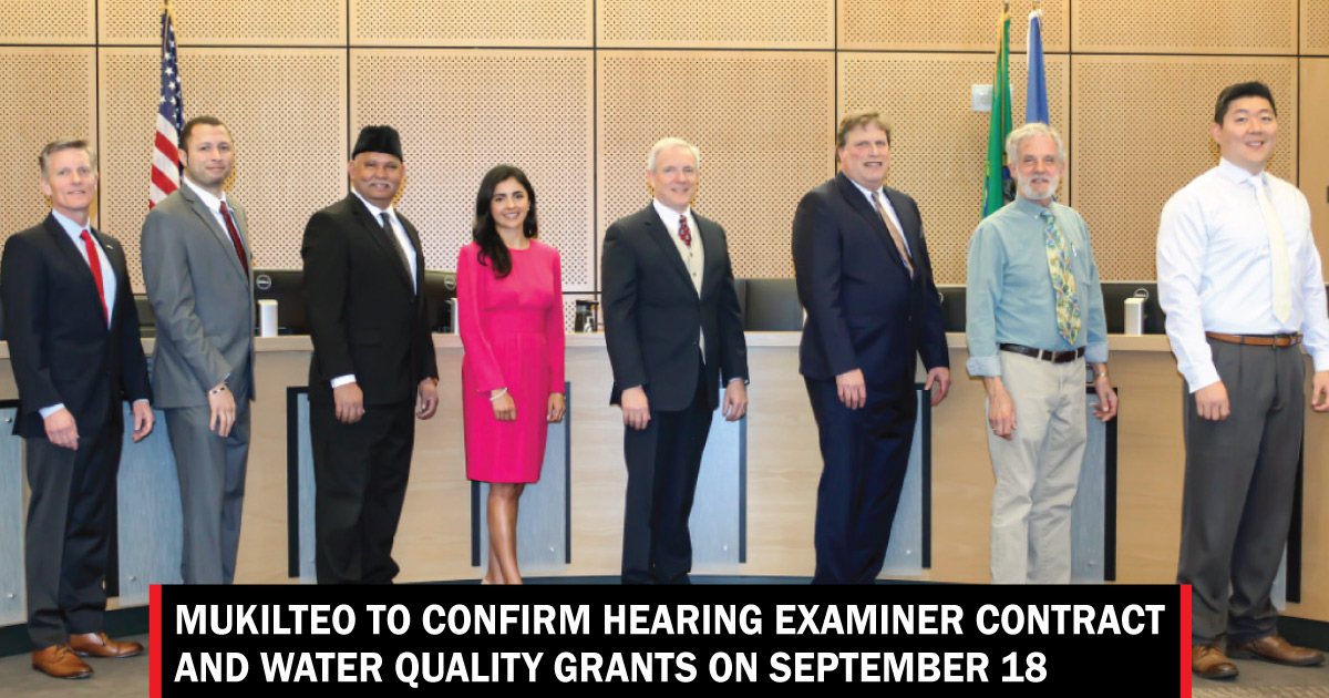 MUKILTEO, Wash., September 16, 2023—For its Business Meeting at 6:00 p.m., Monday, September 18, the Mukilteo City Council will vote on FY-25 Water Quality grant for four projects and confirm the Mayor Joe Marine’s appointment of Alex Sidles as Hearing Examiner. This meeting will be held both in-person and can watch the live streaming of Council Meetings at www.mukilteowa.gov, Facebook Live and is also available via Zoom.