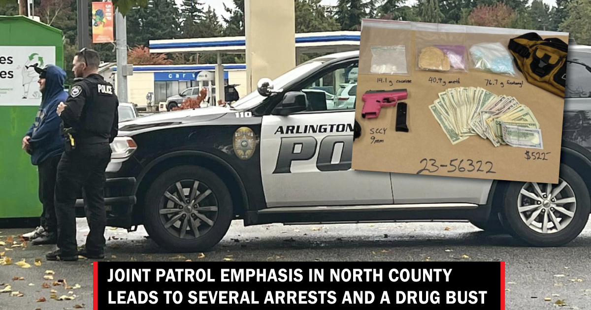 SNOHOMISH COUNTY, Wash., October 17, 2023—Last Wednesday, the Snohomish County Sheriff’s Office, in collaboration with the Violent Offender Task Force, and Arlington and Marysville police departments, worked a joint patrol emphasis in north Snohomish County where they made approximately 63 traffic stops, issued 23 tickets, contacted 52 people, made 12 arrests, 9 warrant arrests and responded to multiple calls for service.