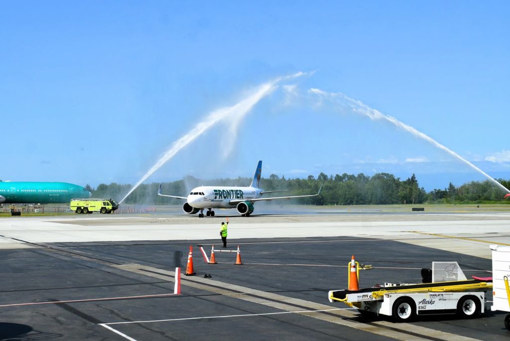 EVERETT—Frontier Airlines, “America’s Greenest Airline,” made its debut at Seattle Paine Field International Airport (PAE) on Monday, June 2 with its inaugural flight from Phoenix arriving shortly after 10:30 a.m. Approximately 1,000 new Frontier Airlines’ passengers are expected on days of flying into and from Paine Field enjoying affordable non-stop flights to Denver, Phoenix, and Las Vegas.