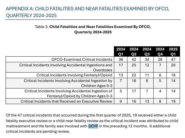 “For the second quarter of 2025, it showed 45 AIRS reports [Administrative Incident Reporting System] involving child fatalities or near-fatalities, compared to 47 in the first quarter. There were six cases involving accidental ingestion of fentanyl by children ages 0 to 3,” he said.