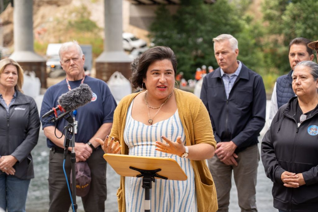 Governor Ferguson visited the site on Sunday, accompanied by U.S. Representative Emily Randall, Lower Elwha Klallam Tribal Chair Frances Charles, Department of Ecology Director Casey Sixkiller, and other officials.
