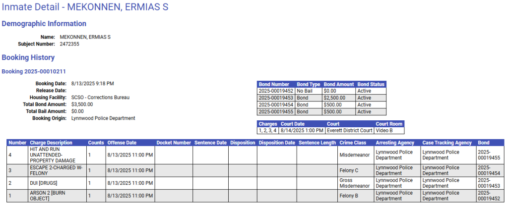 Lynnwood Police responded to the incident around 8 p.m. August 13, with Officer Hydara grabbing a fire extinguisher to extinguish the flames while Officer Magnuessen and K9 Cannon tracked the suspect straight to his hiding spot.