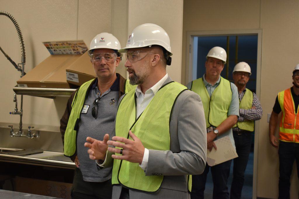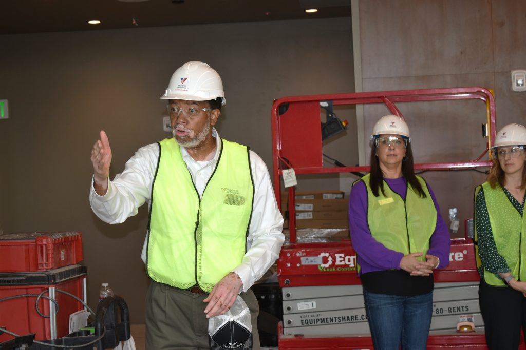 Attendees were then separated into two groups, lent hardhats and safety vests (the facility is still an active construction site), and led – by way of Dr. Steve Woodard and Joel Feldman, Philanthropy Builder for VOA – through the building’s various rooms.