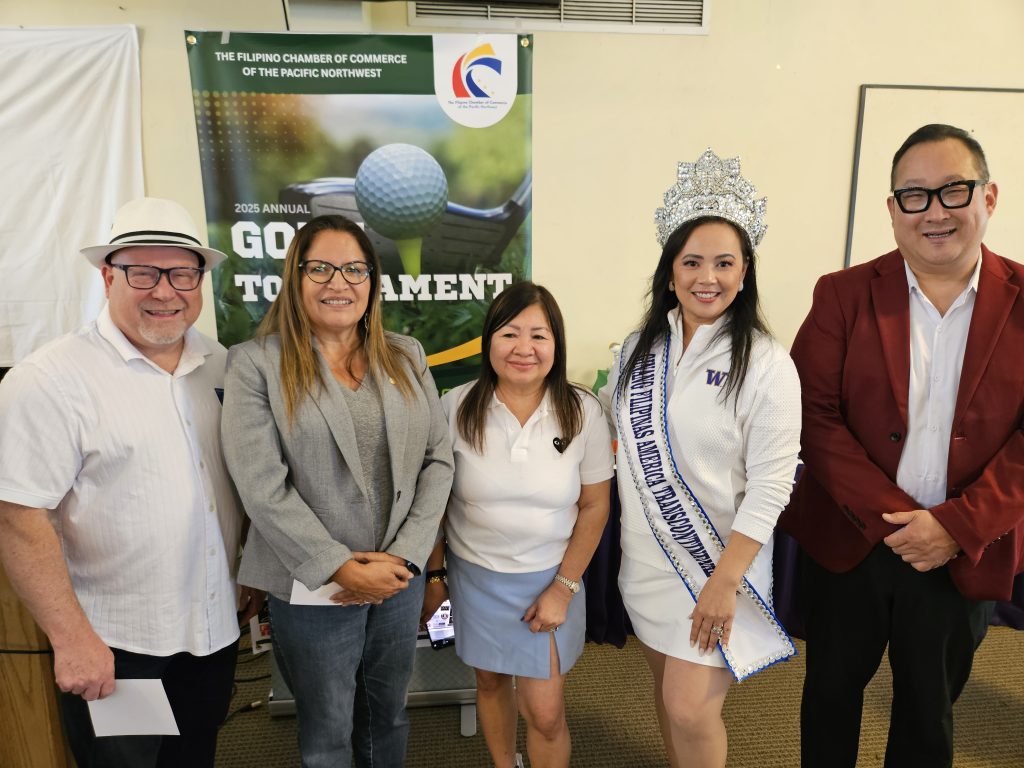 (From left to right): Tukwilla Mayor Thomas McLeod, Senator Claudia Kauffman, FCCPNW President May Dominguez, model, singer, Mrs. Ginang-Filipinas America Transcontinental 2025 winner, nurse consultant, and PCCPNW Events Chair Mary Villasin-Tu’ifua, and Greater Seattle Korean Association VP Sam Sim. Photo: George Ftikas Jr., Lynnwood Time