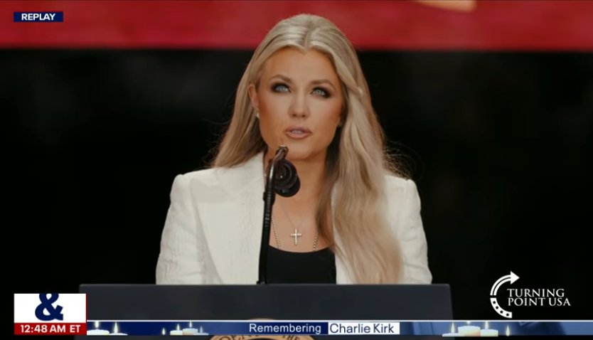 Addressing the “lost boys of the West”—directionless young men “wasting their lives on distractions… consumed with resentment, anger and hate”—she affirmed Kirk’s desire to save them, extending forgiveness to Robinson, Kirk’s assassin, as “the answer to hate is not hate… love for our enemies.”