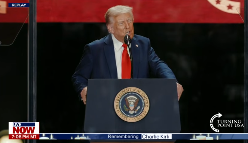 President Trump closed with a sweeping eulogy, dubbing Kirk “a martyr now for American freedom” whose voice “will echo through the generations.”