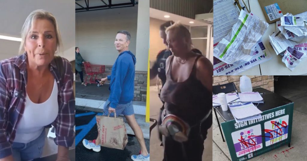 - Spokane: A guy walked up to a signature gatherer at Trader Joe’s in Spokane on Friday, Sept 26. He pretended like was going sign and then scribbled a big X through the whole page and walked off very proud of conduct defacing signatures.