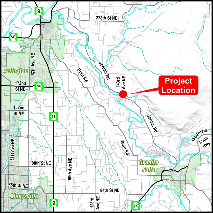 Join Snohomish County Public Works in celebrating the replacement of Jordan Creek Bridge 214 along Jordan Road between Arlington and Granite Falls. The new structure meets current design standards and restores two-lane access to better accommodate motorists, commercial vehicles, bicyclists, and pedestrians.