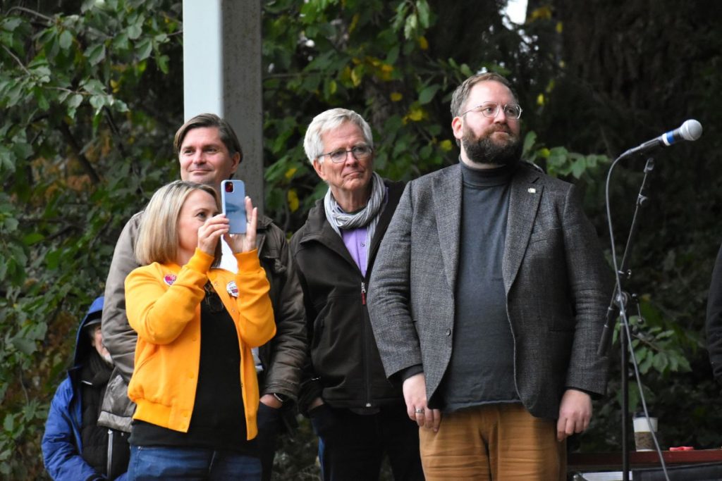 Other speakers at Edmonds City Park were Washington State Senators Marko Liias (D-Edmonds) and Jesse Salomon (D-Shoreline), Edmonds City Councilwoman Chris Eck, Lynnwood City Council Vice President Joshus Binda, and Mountlake Terrace City Council candidate Sam Doyle.