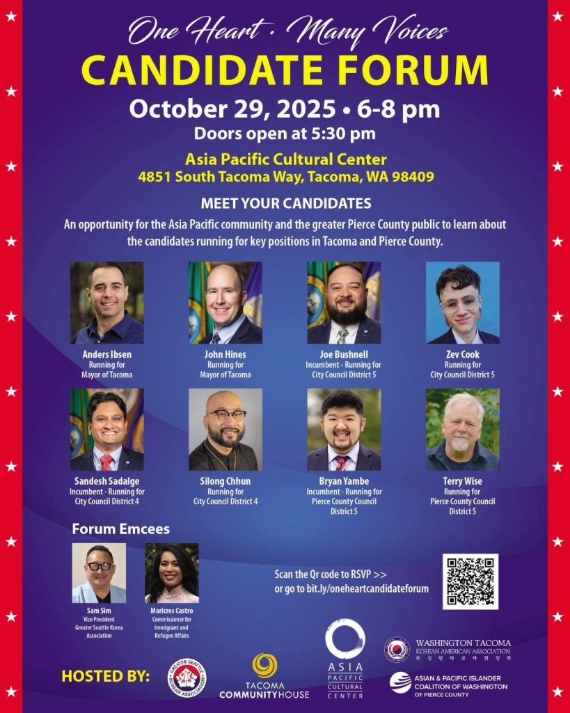 “This event was deeply meaningful because it marked the first time in over 30 years that the [Asian American, Native Hawaiian, and Pacific Islander] and communities of color came together for a town hall and candidate forum in Tacoma and Pierce County,” Sim said. “Our goal was to ensure that our diverse voices were heard directly by the candidates and to strengthen civic engagement across all communities. Representation matters and this forum was an important step toward building understanding, unity and a stronger collective voice.”