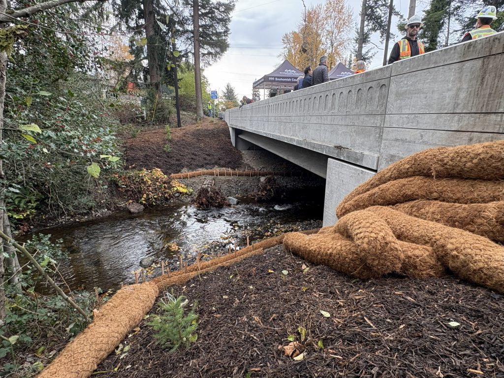 “It’s a huge improvement for fish and other wildlife like deer,” Anderson told the Lynnwood Times. “This is also one of the first projects in the county where we’ve put woody debris under the bridge which is something our partners at the tribes have been asking us to do, so we’re testing that out to see how well that works. The woody debris really helps mimic the natural habitat.”