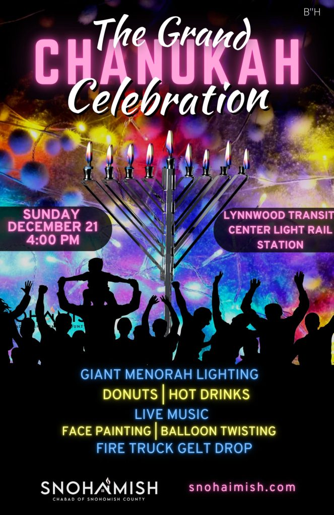 Snohaimish Chabad of Snohomish County invites the public to celebrate the Festival of Lights with the 14th annual Giant Menorah Lighting & Celebration.