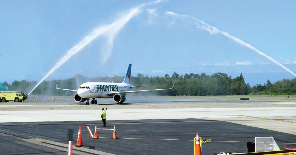 Frontier Airlines comes and goes at Snohomish County’s Paine Field International Airport