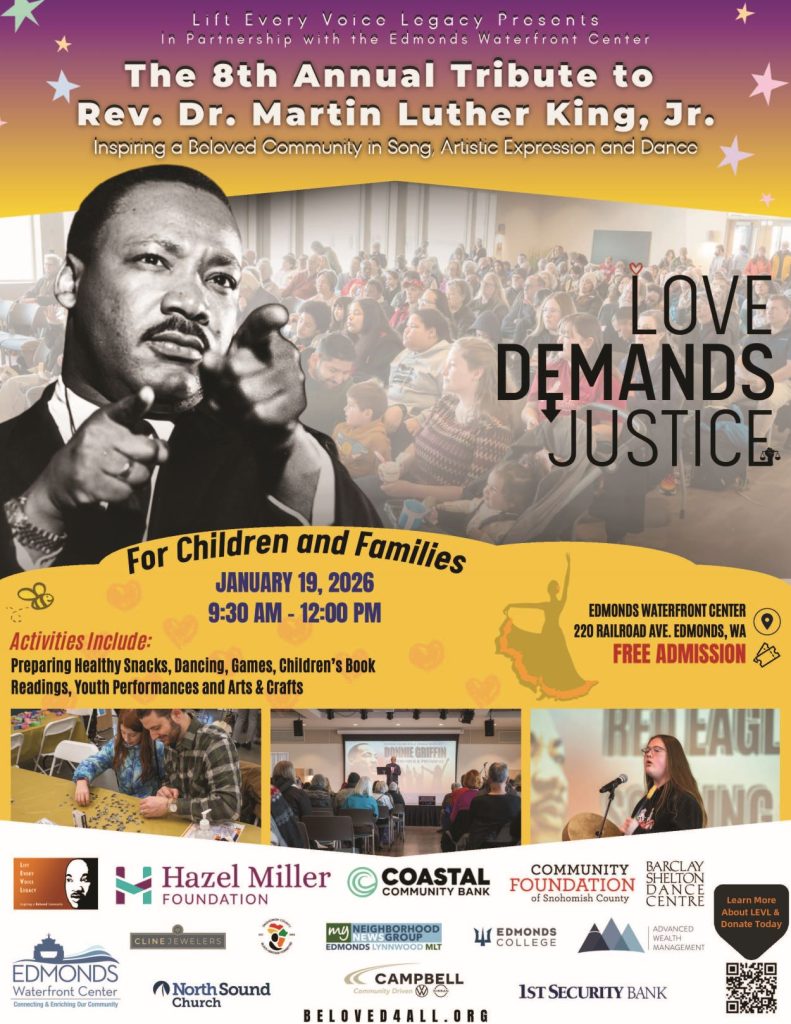 Edmonds College hosting a free, family-friendly tribute to Martin Luther King Jr. on January 21, from 12:30 p.m. to 2 p.m. This event will be engaging, inspiring, and a reminder of the importance of taking action to create a more just and equitable society.