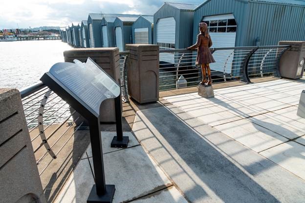 EVERETT—Inspired by a historic photograph of a young girl overlooking the marina, the Port of Everett’s newest bronze-cast sculpture honors the waterfront’s past while inviting visitors to look ahead to the future as the Port’s Waterfront Place continues to take shape.