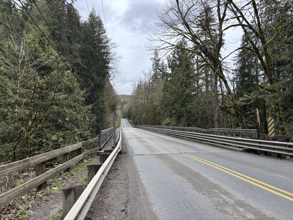 “The arched steel deck Pratt truss is the most distinguishing feature of the Granite Falls Bridge,” Snohomish County Engineer Doug McCormick explains, “Bridge 102 is thought to be one of the oldest three-hinged deck truss bridges still standing in Washington, if not the oldest. The first steel deck truss bridges in the northwest were constructed for railroads in the late 1800s.”