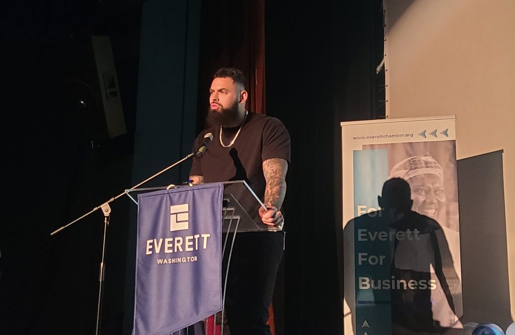 Franklin noted local athletes, including Seattle Seahawks star Abe Lucas and former AquaSox player Cal Raleigh, as examples of Everett talent achieving global recognition.