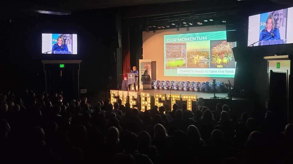 Speaking at the newly renovated Everett Historic Theatre, Franklin praised the city’s workforce, local businesses, and community partners for helping Everett “move forward by believing in what’s possible and doing the hard work day after day.” The mayor highlighted ongoing infrastructure projects, investments in housing, and partnerships with educational institutions and regional employers as central to the city’s growth strategy.