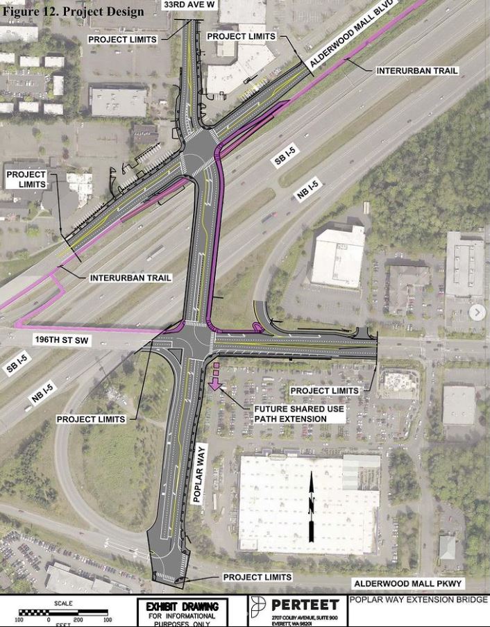 When the Poplar Way Bridge reaches completion in 2028, it is expected to carry approximately 30,000 vehicles per day while allowing the residents of South Lynnwood to gain easier access to Alderwood Mall more efficiently and safely and reduce congestion on I-5 for motorists using the 196th exit.