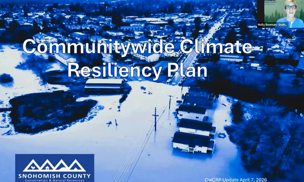 EVERETT—The Economic Alliance Snohomish County held a Coffee Chat Tuesday, April 7, on the Communitywide Climate Resiliency Plan, which outlines strategies to help communities prepare for climate-related impacts, such as flooding, extreme heat, and infrastructure strain.