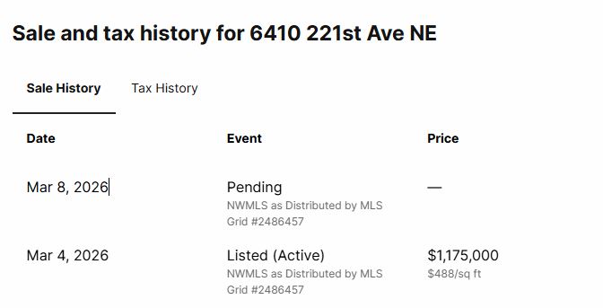 - March 18, 2026: Redfin website updated reflecting sale of Granite Falls home as “pending.”