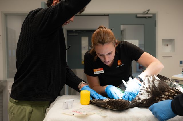 While many eagles arrive with unknown causes of injury, the most common cases stem from territorial fights. Since January, however, wildlife veterinarians have treated several eagles with gunshot-related injuries, underscoring the ongoing threats wildlife face in our region.